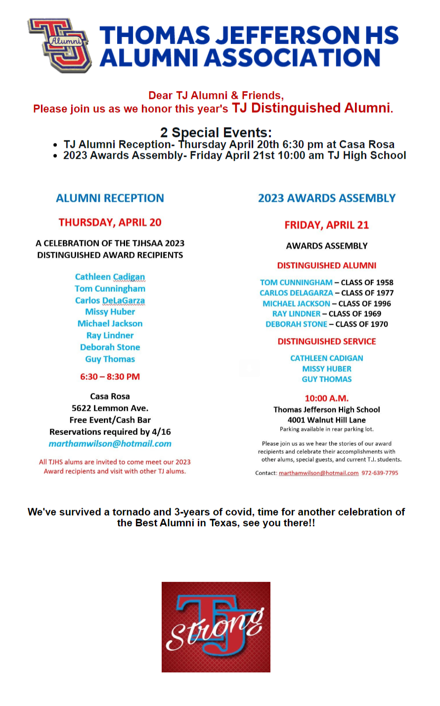 - April 30, 2024 Join Us For a Rededication of TJ's Baseball Field and a Scrimmage with TJ Baseball Alumni